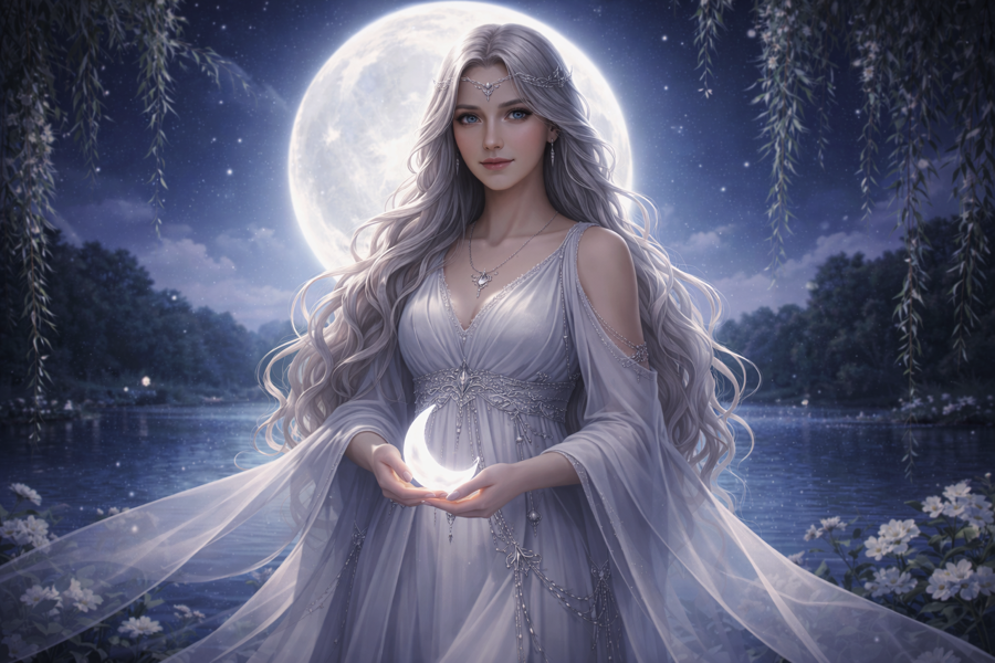 Die Mondgöttin Lunara ist deine Begleiterin durch die Mondphase des zunehmenden Mondes hindurch, sie wird dich erinnern, was während dieser Phase für deine Weiblichkeit und deinen inneren weiblichen Rhythmus wichtig ist.